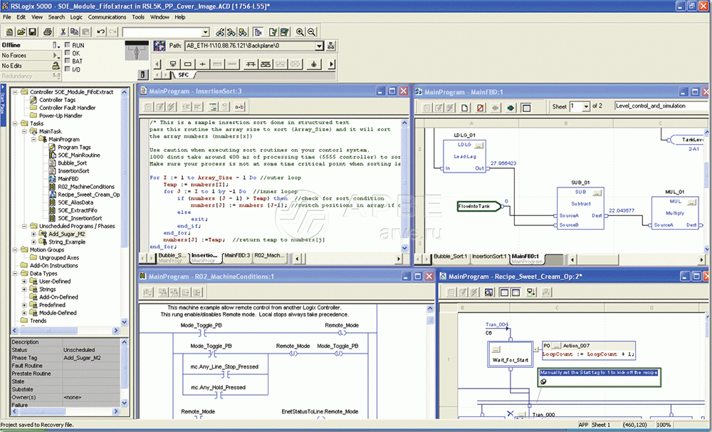 RSLogix 5000 обеспечивает поддержку хорошо интегрированной функции движения, имеющейся в Logix5000. RSLogix предлагает надежный обмен данными, мощные функциональные возможности и превосходную диагностику.