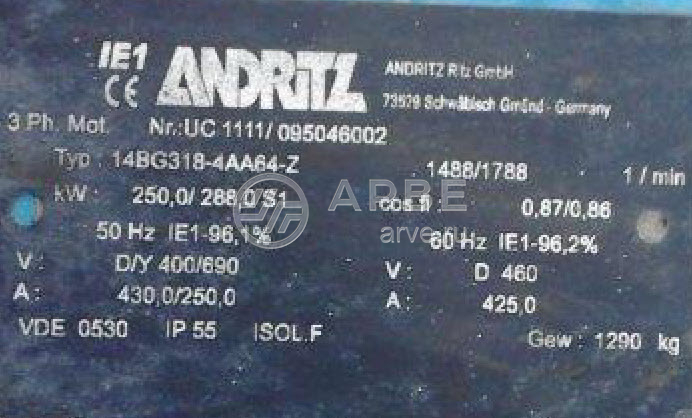 14BG318-4AA+A11+K45+D03+M94 двигатель № UC 1111/095046002 ANDRITZ арт. 4024358 Motor 250M/55/4-/V1/RITZ 13 IMV 1, 250kw, вес 1300кг