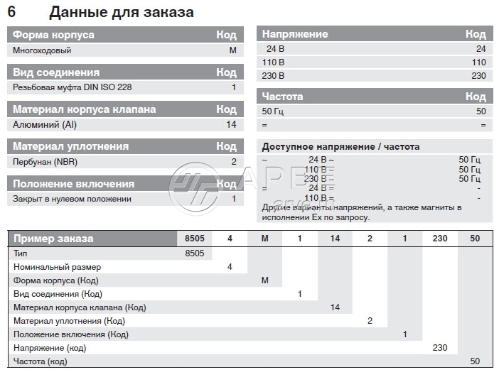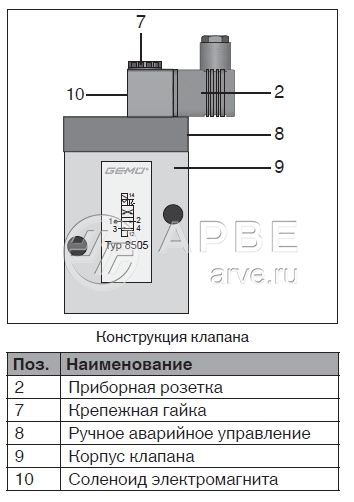 • 8505 4/2-ходовой электромагнитный клапан с сервоуправлением