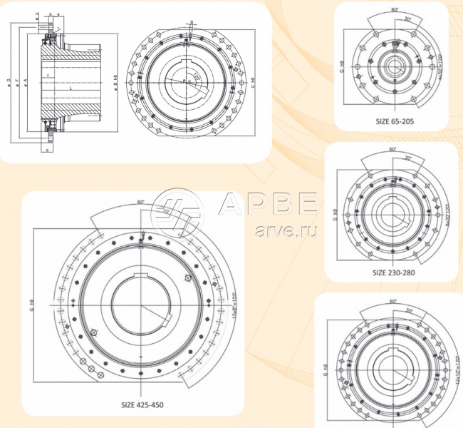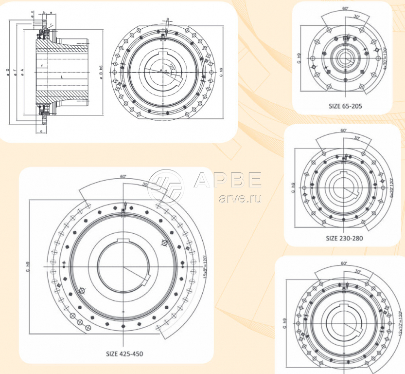 Муфта AGBS должна поставляться в комплекте, втулка и ступица не могут поставляться отдельно. Они подходят для горнодобывающей техники, кранов для портов и верфей, морского и морского применения.
