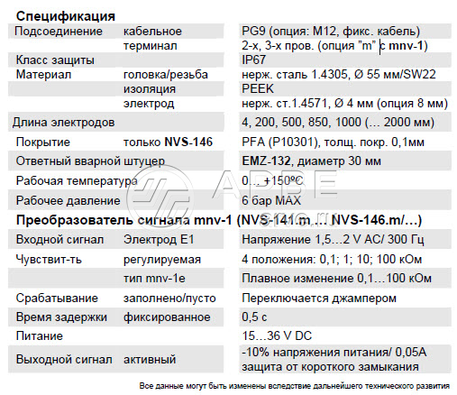 ANDERSON-NEGELE NVS-146/200 / M / X / X / 200MM датчик
