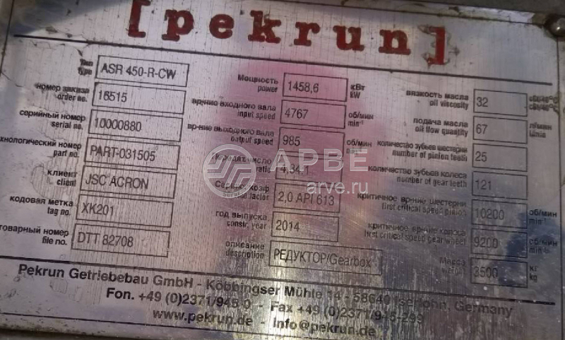 • ASR 450-R-CW sn 10000880 редуктор PEKRUN