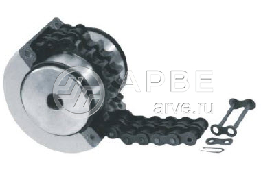 Под двумя крышками двухрядная роликовая цепь входит в зацепление с двумя ступицами с зубьями, отсюда и передается крутящий момент.