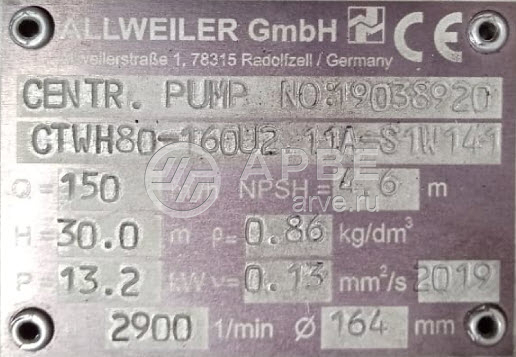 • CTWH80-160U2/11A-S1W14-1 насос # 19038920 ALLWEILER