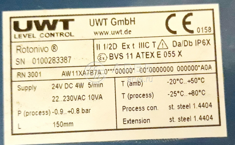 Датчик RN3001 AW11XA7B7A sn 0100283387 UWT