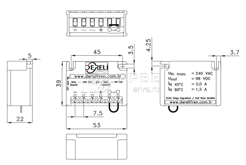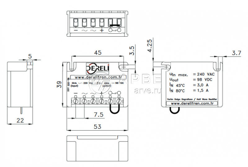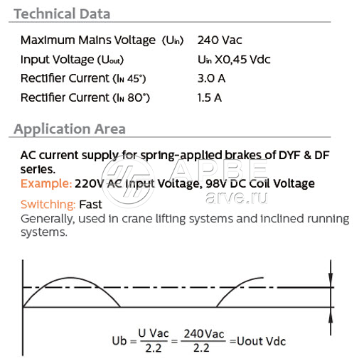 6-полюсный выпрямитель / Выпрямители электромагнитного тормоза / Выпрямители управлением тормоза / Выпрямительный блок