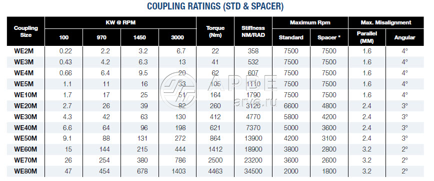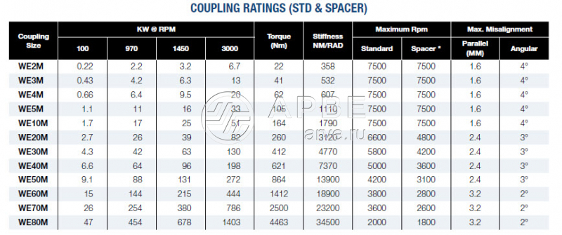 • Dura-Flex муфты WE2M-WE80M Metric TB Woods