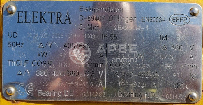 Двигатель 12BA250M-4 55kw 400/690V B3 ELEKTRA