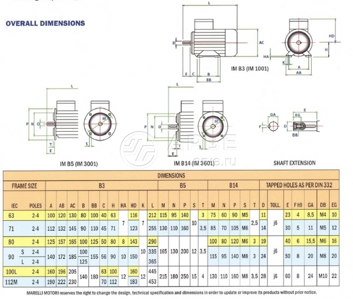 Двигатель 1ф 3кВт MLA100LB4 B35 Marelli Motori