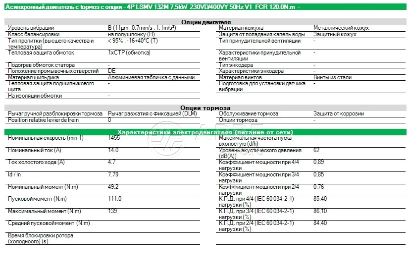 Двигатель 4P LSMV132M 7,5kW V1 230VD/400VY 50Hz Leroy Somer - купить в компании АРВЕ. Чтобы узнать наличие, сроки поставки, условия доставки, скачать прайс-лист, каталог или инструкцию, получить консультацию по всем возникающим вопросам, обращайтесь к нашим менеджерам удобным вам способом.