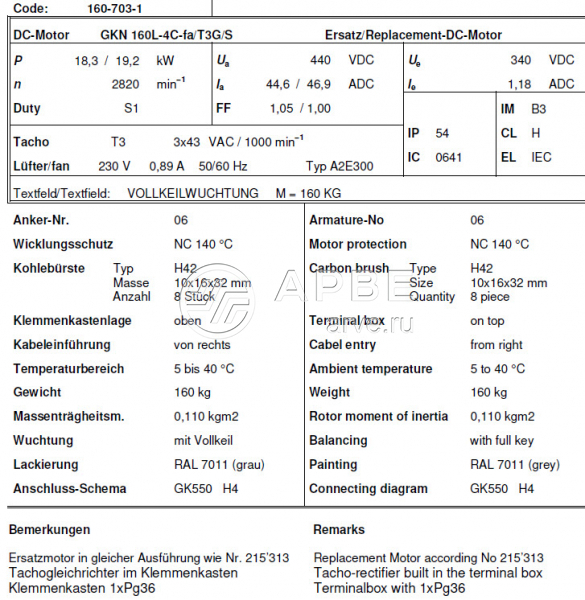 МОТОР HB-THERM ERSATZ-DC-NEBENSCHLUSS MOTOR GKN