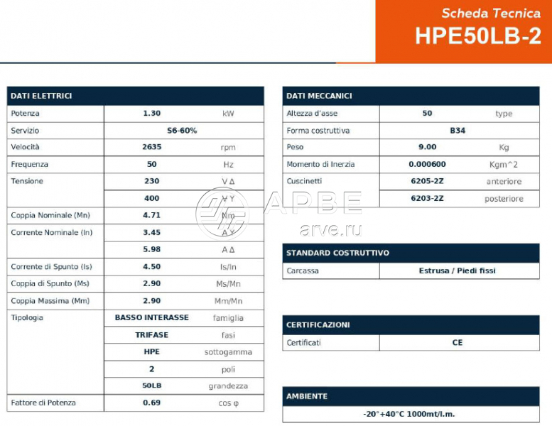 • Двигатель HPE50LB 1,3кВт 2P 230/400В 50Гц S6 Seimec