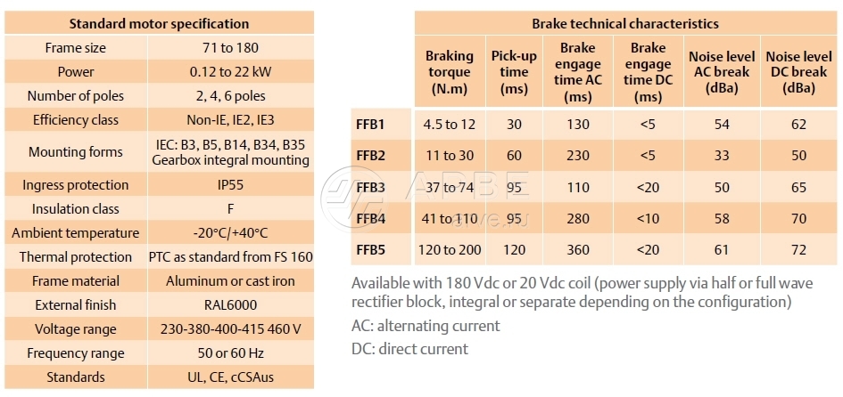 (0,25 to 5,5 kW) : 230 ∆ | 380 Y | 400 Y | 415 Y - 460 Y ou 400 ∆ (7,5 to 15 kW) : 380 ∆| 400 ∆ | 415 ∆| 690 Y - 460 ∆ |