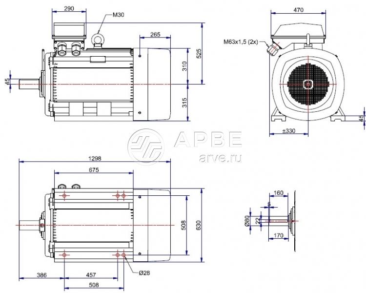 Электродвигатель OMT1-RT-IE2 250Mx2 75кВт OMEC