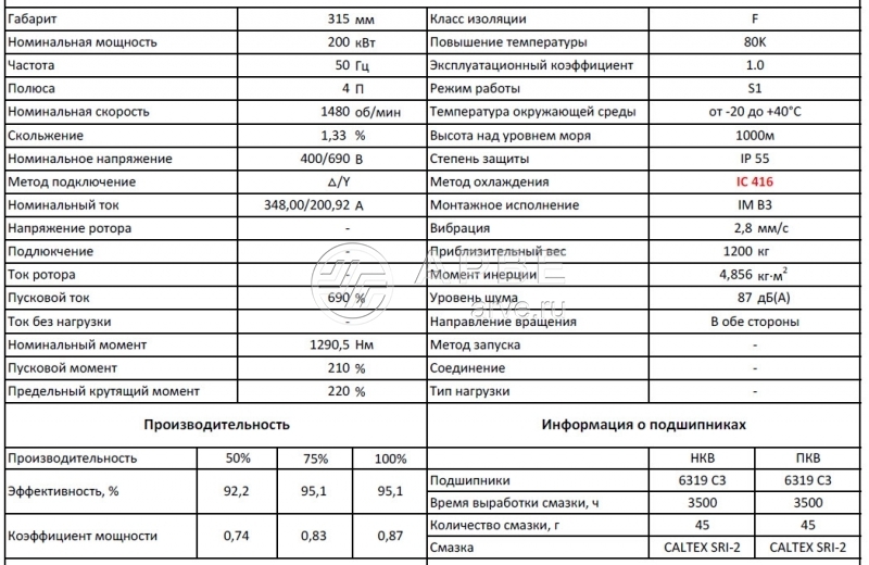 Электродвигатель переменного тока OMT1-RT-IE2 315LX4 200кВт OMEC