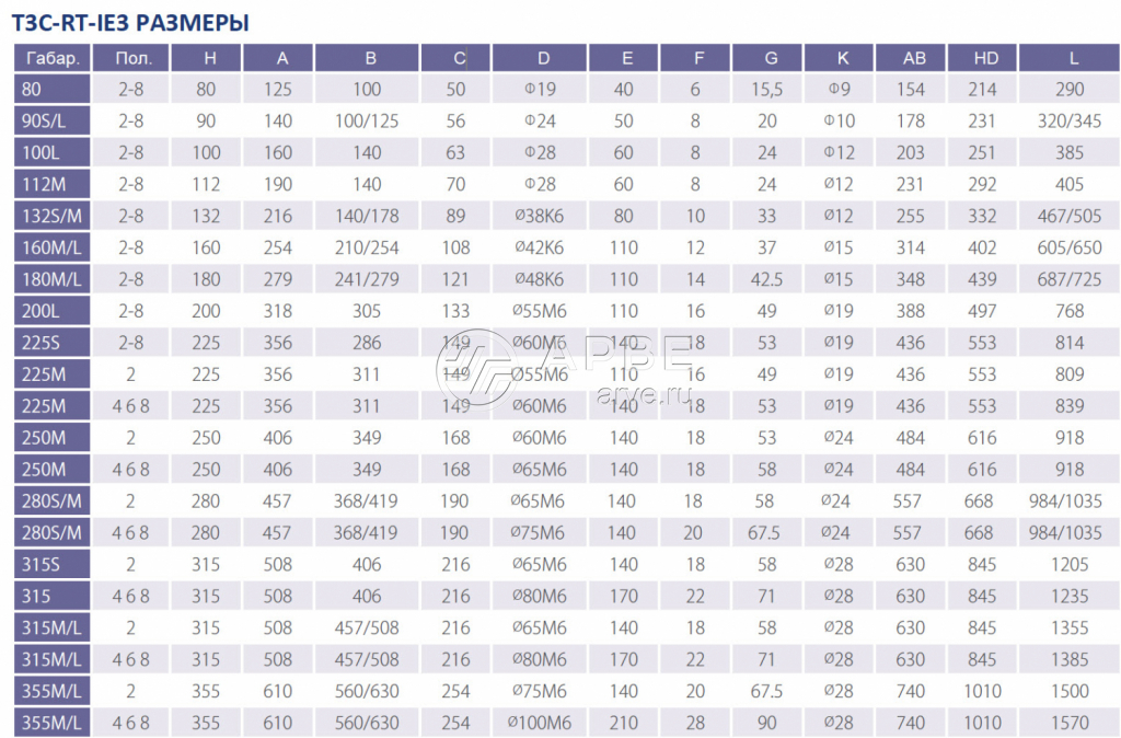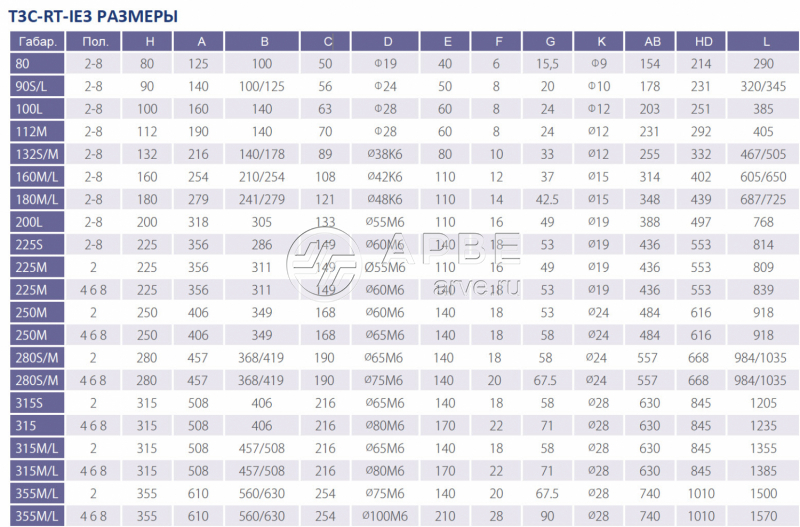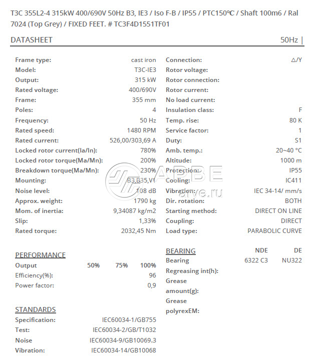 • Электродвигатель T3C-RT-IE3 355L2-4 315kW 400/690V