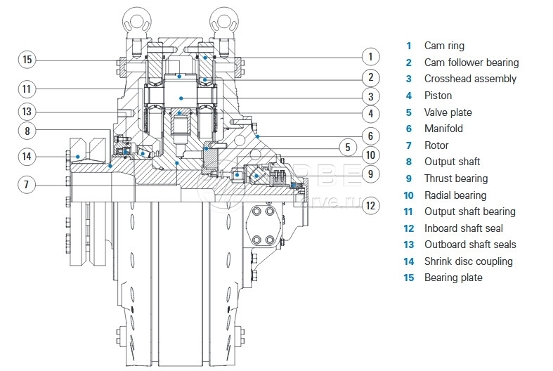 Hydre-MAC - это низкоскоростные радиальные поршневые гидромоторы с высоким моментом (LSHT), а также с прямыми приводами с особой конструкцией выступа кулачка для промышленных применений с переменной скоростью.