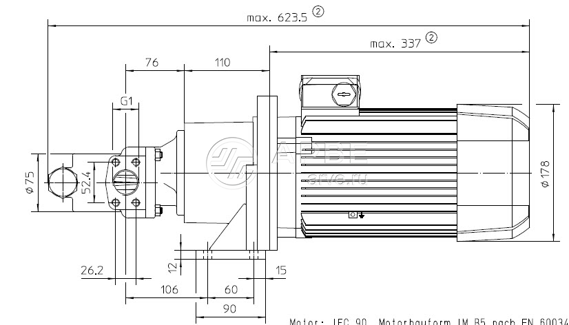A-SF2/13RD-VLFM, Pumpenaggregat, 2-20 bar 1,1 kW, 1500, 230/400V, 50Hz, IP55, F, B5, IE3