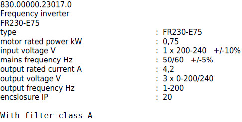 830.00000.23017.0 Инвертор FR230-E75 Carl Rehfuss