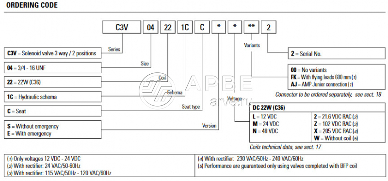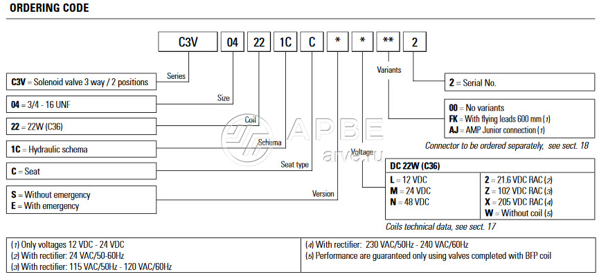 • Клапан соленоид.C3V04221CCEM002 Brevini