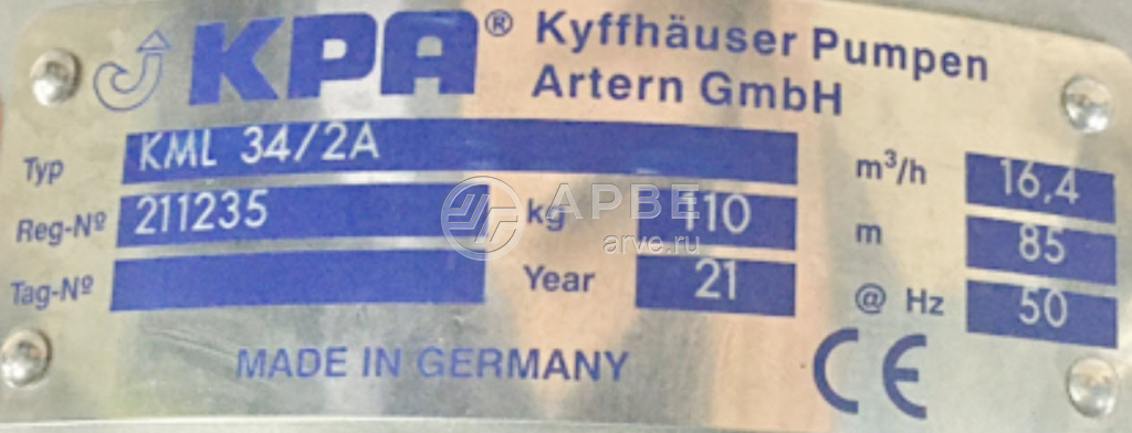 • KML 34/2A насос KPA/Kyffhäuser Pumpen Artern GmbH