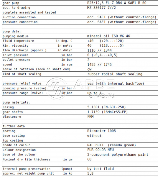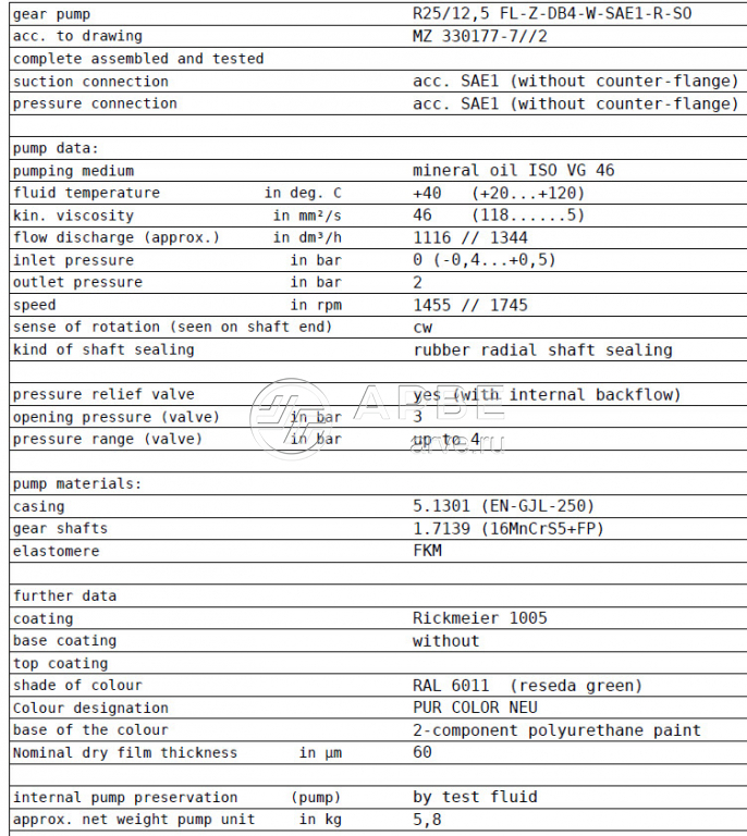 • Масляный шестерённый насос Rickmeier R25/12,5 FL-Z-DB4-W-SAE1-R-SO