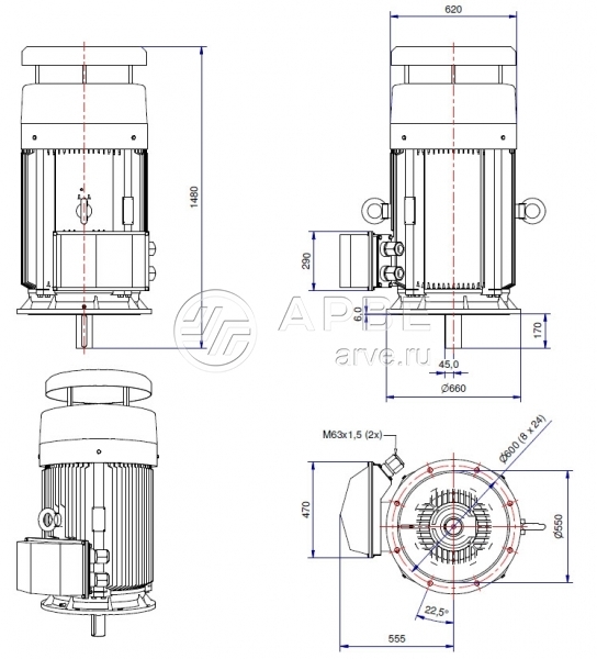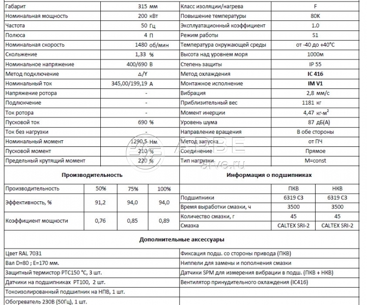 Мотор OMT1-RT-IE1 315Lx4 200кВт OMEC