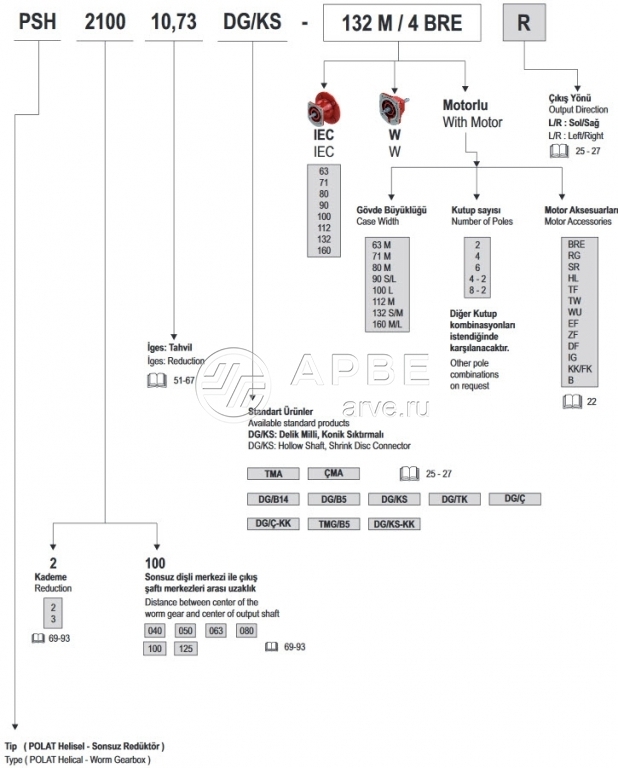 Мотор-редукторы PGR (Полат, Турция-Германия) серии PSH цилиндро-червячные