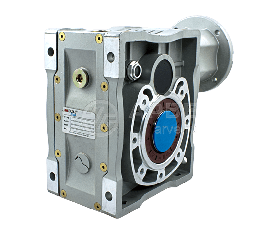 Мотор-редукторы с гипоидной передачей серии DAH Dual system. Гипоидные зубчатые колеса дуальной системы являются инновационным и эффективной альтернативой червячных передач. Используя поперечное смещение оси ведущей шестерни (гипоидные смещение) по сравнению с зубчатым колесом, они способны выдержать большие нагрузки, чем червячные передачи соответствующего размера.