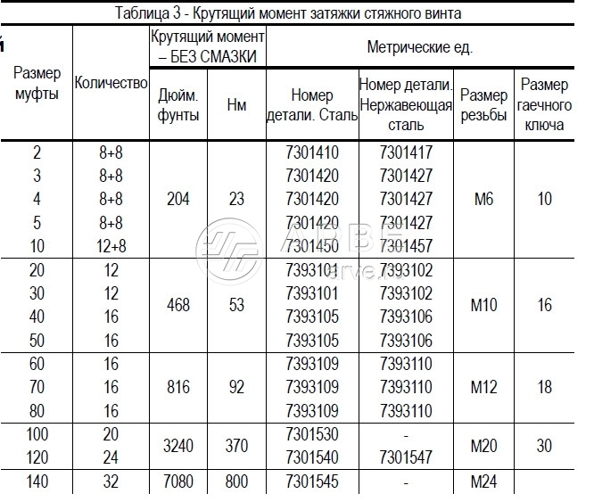 5.10. Затяните все винты с головкой до вращающего момента, указанного в Таблице 3.