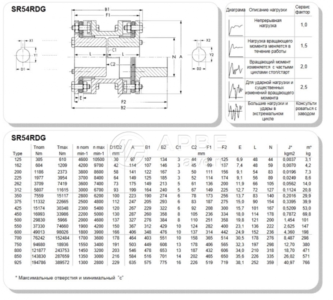 Thomas SR54RDG–это пластинчатая муфта пониженнего диаметра, которая имеет большую скорость и большой крутящий момент. Только четыре компонента, две ступицы и двойной центральный элемент, придает муфте SR54RDG легкое обслуживание.