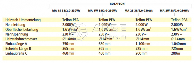 • Нагреватели стержневые ROTAFLON Mazurczak