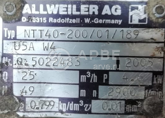 • Насос NTT40-200/01/189 # Q.5022483 ALLWEILER