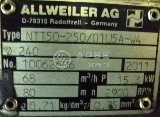 • Насос NTT50-250/01U5A-W4 # 10062606 ALLWEILER