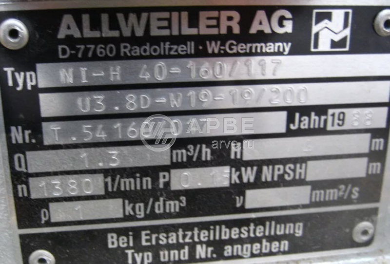 • NI-H 40-160/117 насос # T.54160/017 ALLWEILER