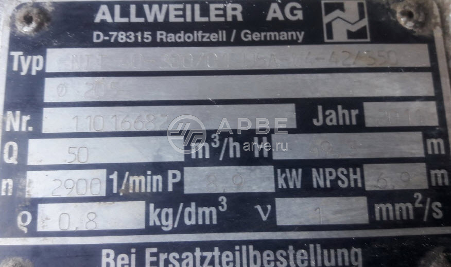 NIT 40-200/01/205 U5A-W4-42/350 насос # 11016682 ALLWEILER