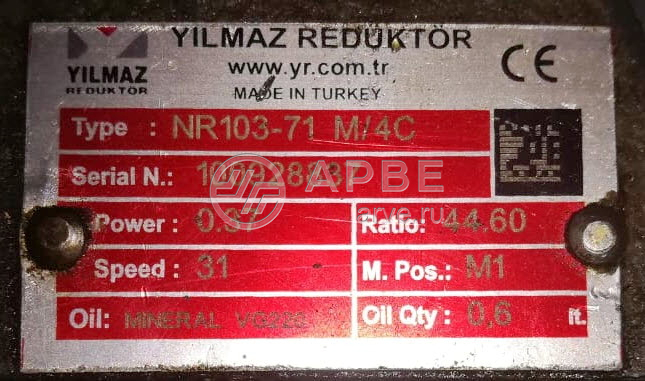 • NR103-71 sn 100928837+101670804 мотор-редуктор Yilmaz