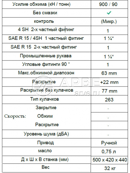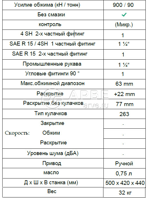 В комплект поставки входят: пресс + комплекты кулачков РВ 263 -17, 20, 24, 28, 32, 40 мм + кейс длякулачков.