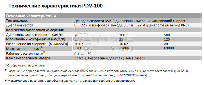 Портативный лазерный виброметр PDV-100 предназначен для бесконтактного измерения параметров вибрации объектов методом лазерной доплеровской виброметрии (ЛДВ).