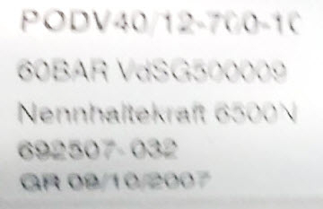 • PODV40/12-700-10 nennhaltekraft 6500N K + G Pneumatik