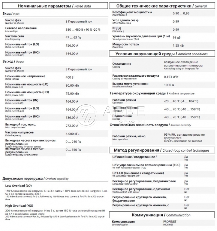 Преобразователь частоты 6SL3210-1KE31-7UF1 Siemens