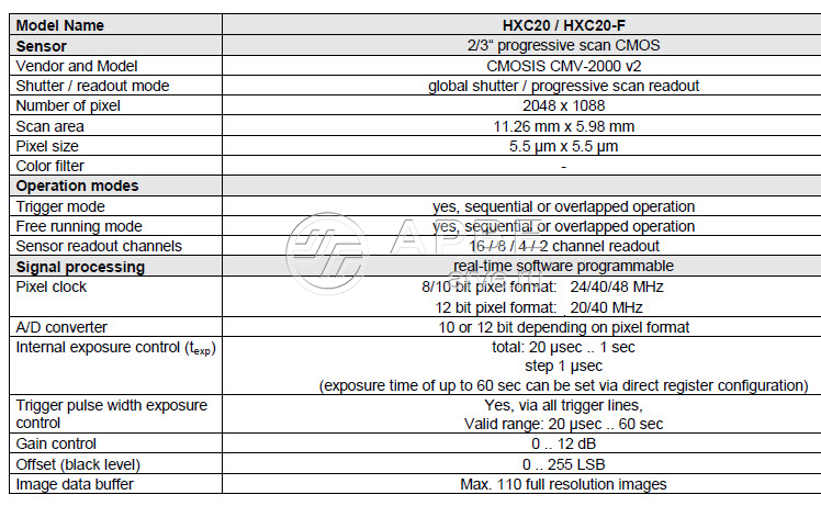 Full Frame, 2048 1088 px, max. 337.0 fps Binning 2 1, 1024 1088 px, max. 337.0 fps Subsampling 2 2, 1024 544 px, max. 664.0 fps |
