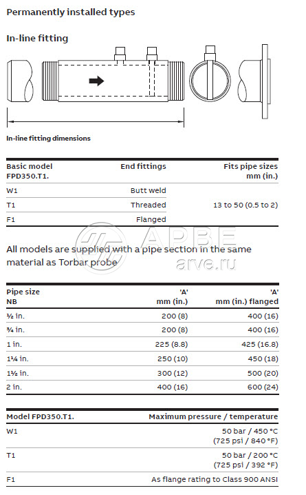 Расходомер с трубкой Пито FPD350 Torbar ABB
