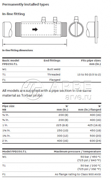 • Расходомер с трубкой Пито FPD350 Torbar ABB