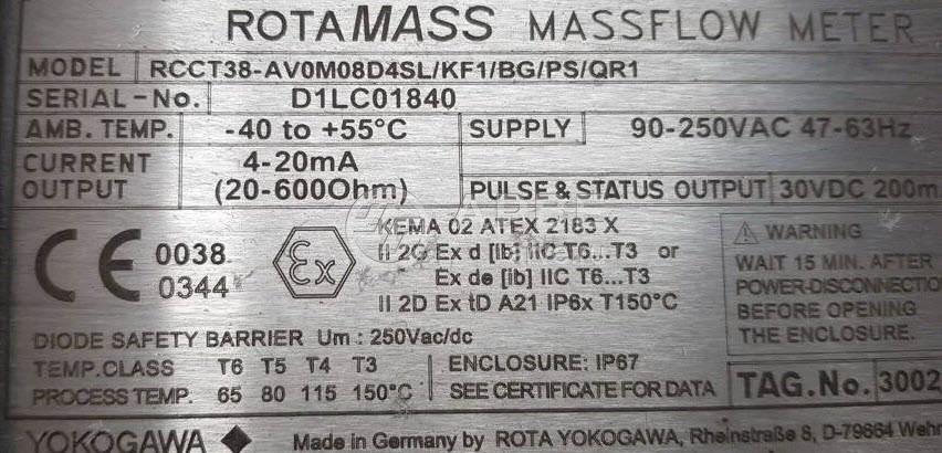 RCCT38 расходомер sn D1LC01840 Yokogawa