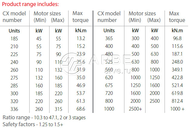 • Диапазон межосевых расстояний от 185 мм и выше с максимальным крутящим моментом 600 кНм