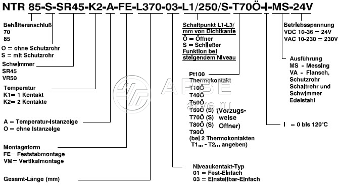 • Реле уровня NTR 70-VR50 K2-0-FE-L340-03-L1/180/S-L2/50/O -T70Ö-I-MS-24V Goldammer