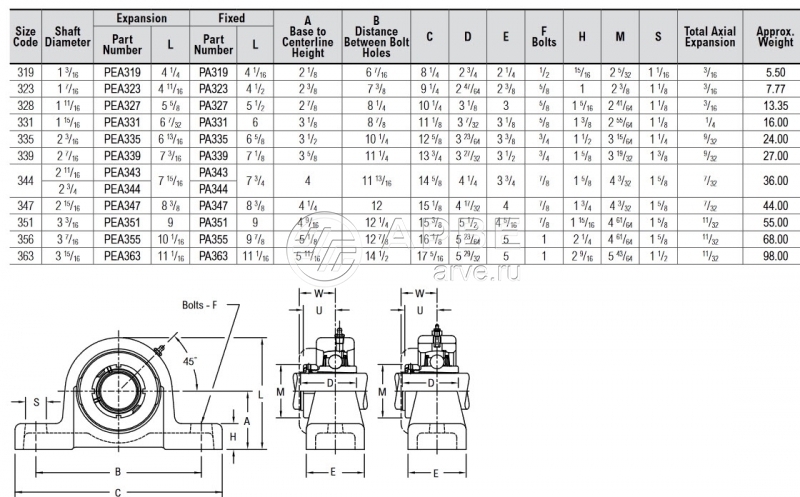Шариковый подшипник с адаптером PA 300 Rexnord