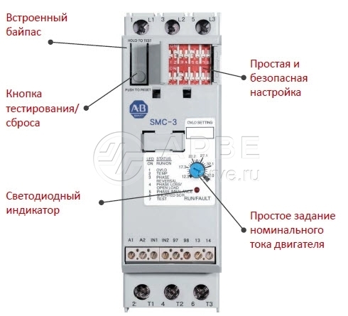 Софтстартеры компактные серии SMC-3 Allen-Bradley. УПП обладает компактной конструкцией и обеспечивает полноценное трехфазное управление, логические функции и непревзойденную производительность. Диагностика системы и двигателя, а также регулируемая электронная защита от перегрузки сокращают время простоя и защищают оборудование от повреждений.
