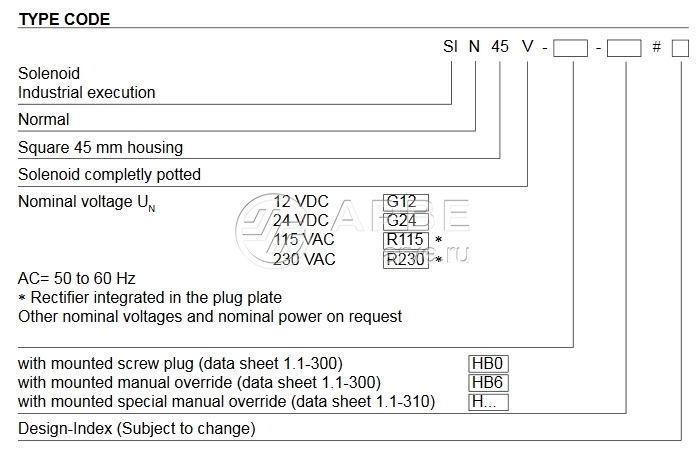 • Соленоид SIN45V-G12-HB0 Wandfluh